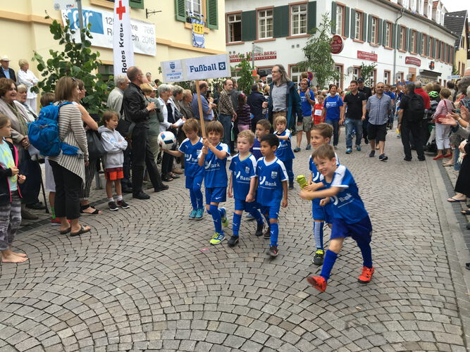 Der Zug startete dann pünktlich um 14:00 Uhr und ging durch die Felix-Wankel-Straße, Fabrikstraße, Kolbenzeil, Freiburger Straße, Christian-Bitter-Straße, Schelklystraße, Friedrich Weinbrenner Straße, Leimer Straße, Rathausstraße in die Herrenwiesenstraße.