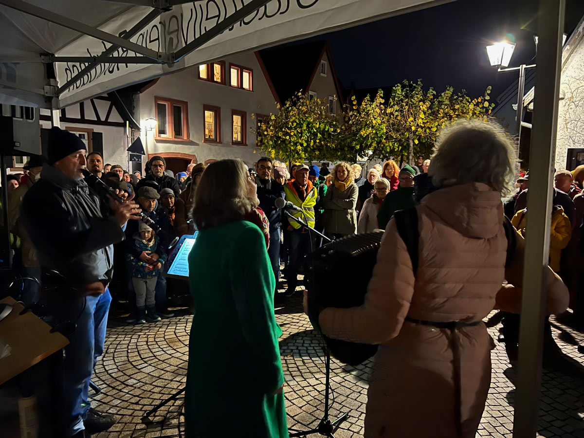 Musikalisch wurde der Abend einfühlsam und beeindruckenden begleitet von Martina Baumann (Akkordeon), Anne Kloos (Gesang) und Uwe Loda (Klarinette). Luisa und Lykke , Konfirmandinnen der evangelischen Melanchtongemeinde, verlasen die Namen der 80 bekannten aus Rohrbach vertriebenen und größtenteils ermordeten Jüdinnen und Juden. Sibylle Baur-Kolster, ebenfalls von der Melanchthongemeinde, beendete mit einem Gebet den Teil der Veranstaltung, der am Alten Rathaus stattfand. Danach zogen die Menschen zum Denkmal für die ehemalige Synagoge in Rohrbach und hinterließen zur Erinnerung Kerzen. Sibylle Ziegler bedankte sich für die breite Teilnahme an der Veranstaltung und wünschte den Anwesenden eine gute Heimkehr.